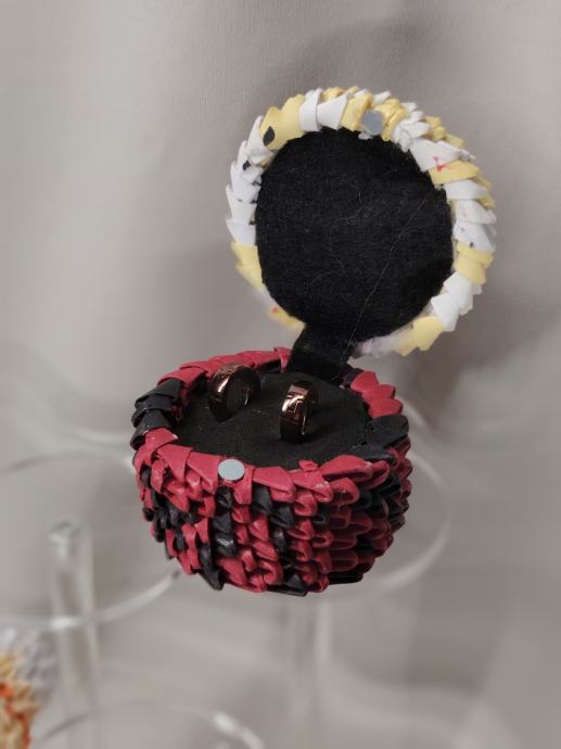 Prodajem ručno rađene 3D origami kutijice za nakit, nove. Svaka kutijica izrađena je tehnikom 3D origamija od savijenih papirnatih modula koji zajedno tvore čvrstu i dekorativnu strukturu. Dostupne su u tri različite kombinacije boja: ljubičasto-bijela, narančasto-bijela i crveno-crna.