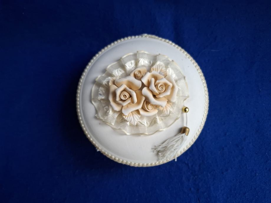 KUTIJA. Za nakit-krem cvjetovi-keramika. Novo. Mob