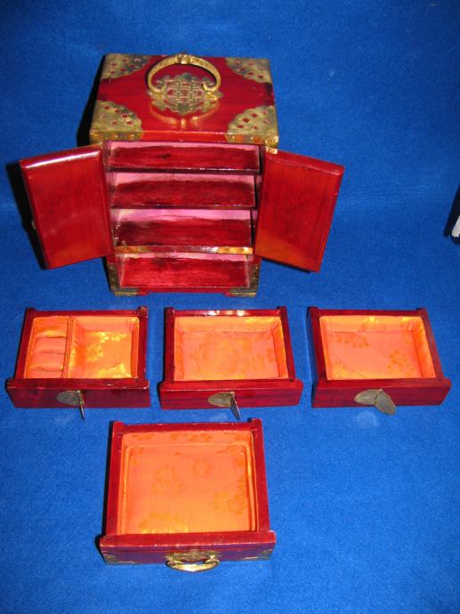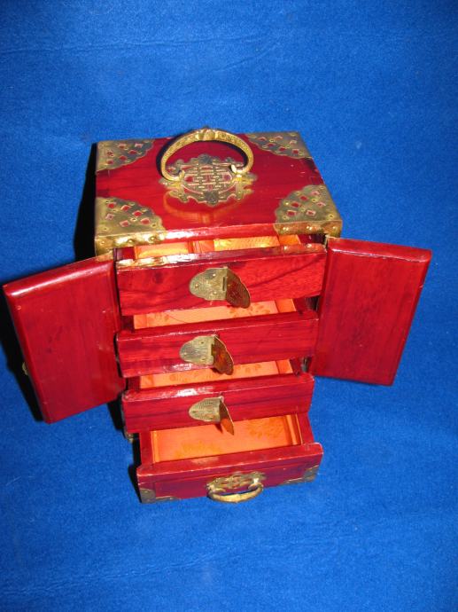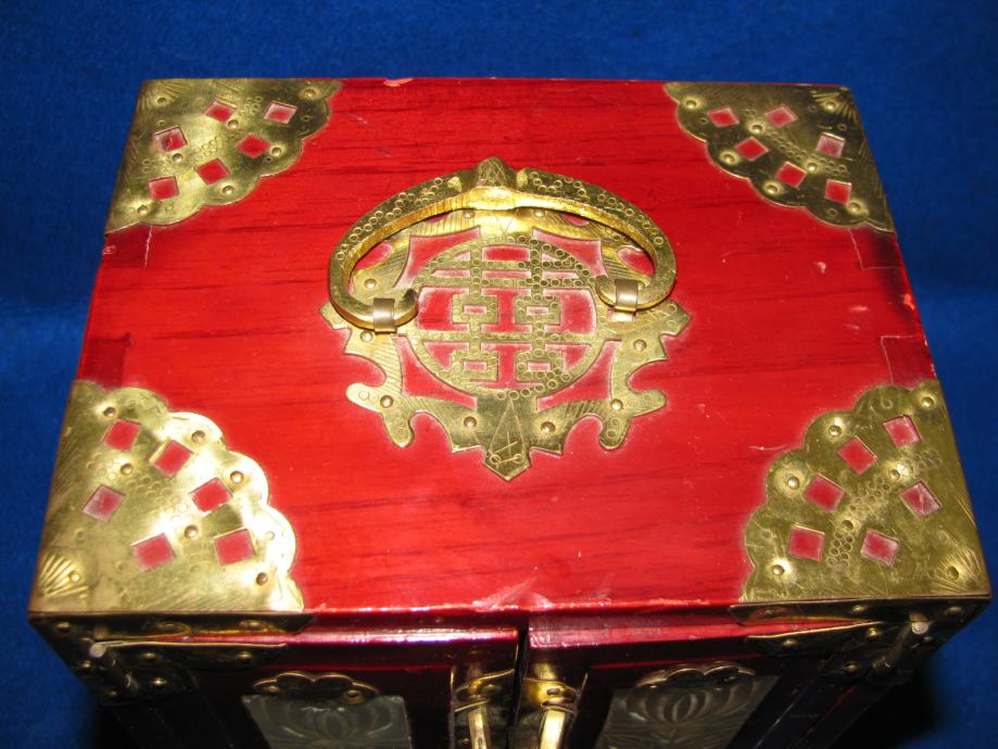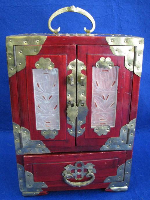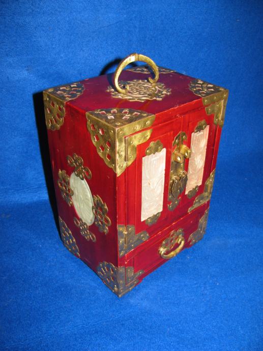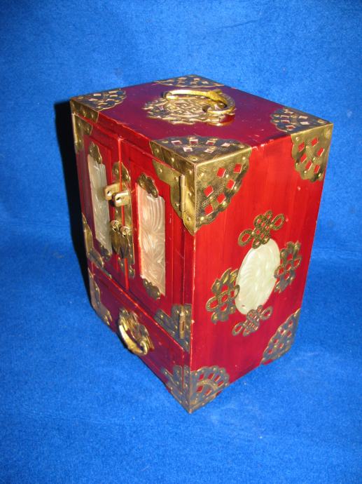 Drveni ormarić okovan i sva armatura od mesinga.