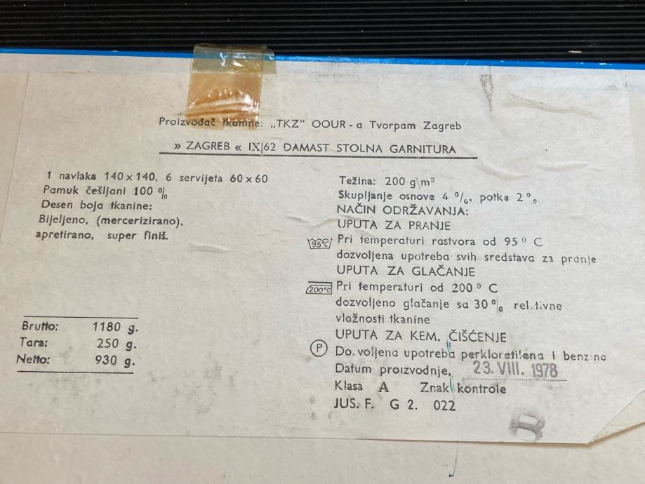 U originalnoj ambalaži, jedna navlaka 140x140 cm i 6 salveta 60x60.