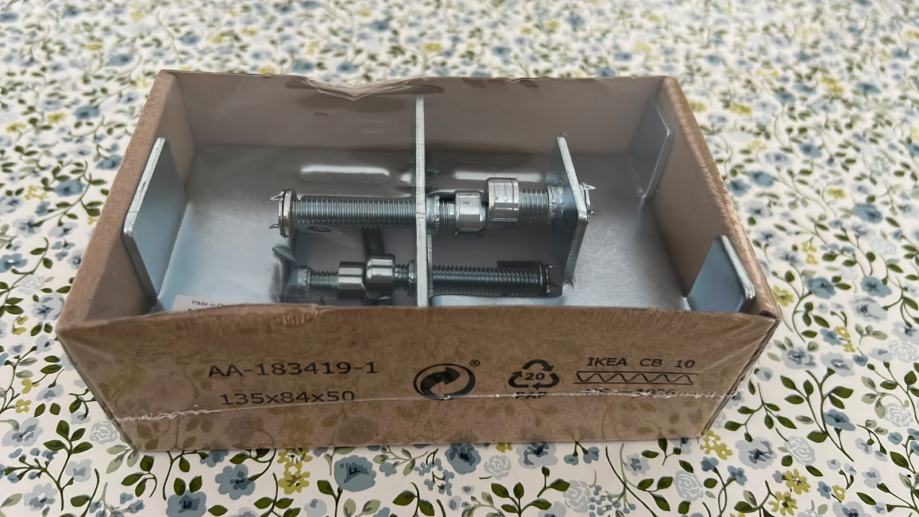 Linnmon spojni okov za spajanje dvije ploče stola, ili ploče i police. Potpuno novo. Ikea nema više u ponudi ovaj okov koji je bio odličan i praktičan.