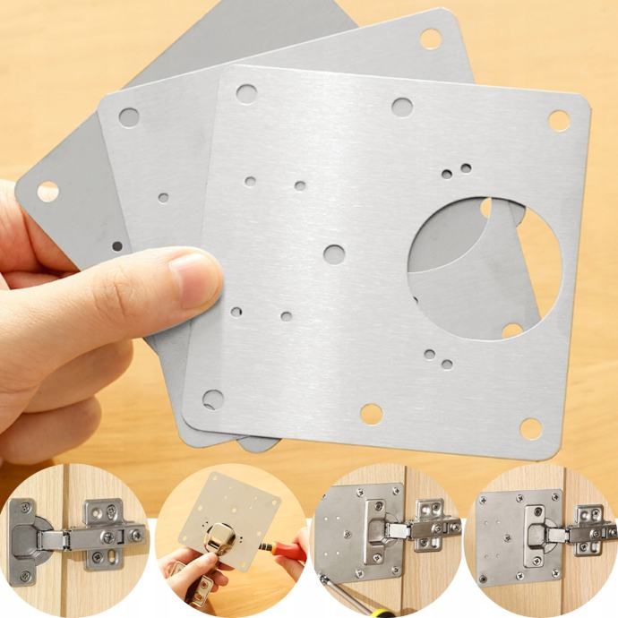 Pouzdano rješenje za oporavak istrošenih ili oštećenih tečajeva vrata! Ovaj set od 4 panela od nehrđajućeg čelika (nehrđajući čelik) idealan je za brzi i učinkovit popravak vrata namještaja, ormarića, kuhinjskih elemenata ili ormara za kupaonice, gdje su šarke izgubile potporu zbog upotrebe.