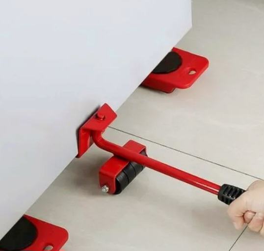 Praktičan komplet koji omogućava lako premještanje teških predmeta bez naprezanja leđa. Set sadrži 4 kotačića s podlogama koji se postavljaju ispod kuteva namještaja, te ručku/polugu za podizanje.