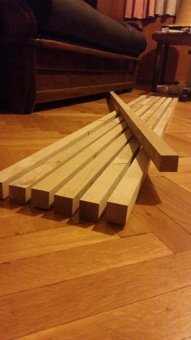 LETVA HRASTOVA 28 x 28 x 1730 mm. UKUPNO 7 KOM. CIJENA JE PO 1 KOM. LETVU JE MOGUCE PAJCATI U ZELJENOJ BOJI, ZATIM LAKIRATI BEZBOJNIM LAKOM ZA DRVO.