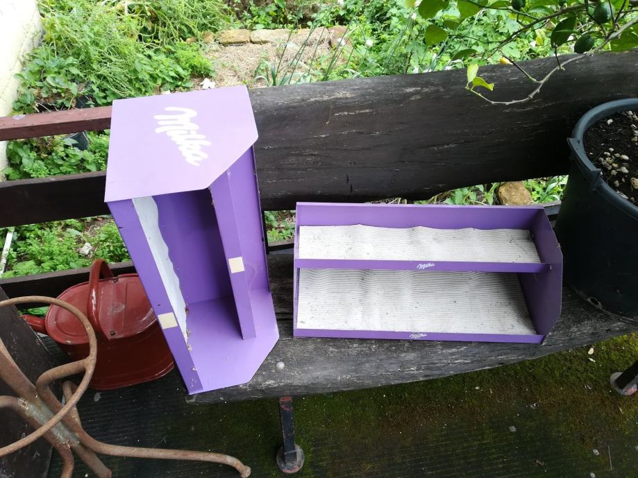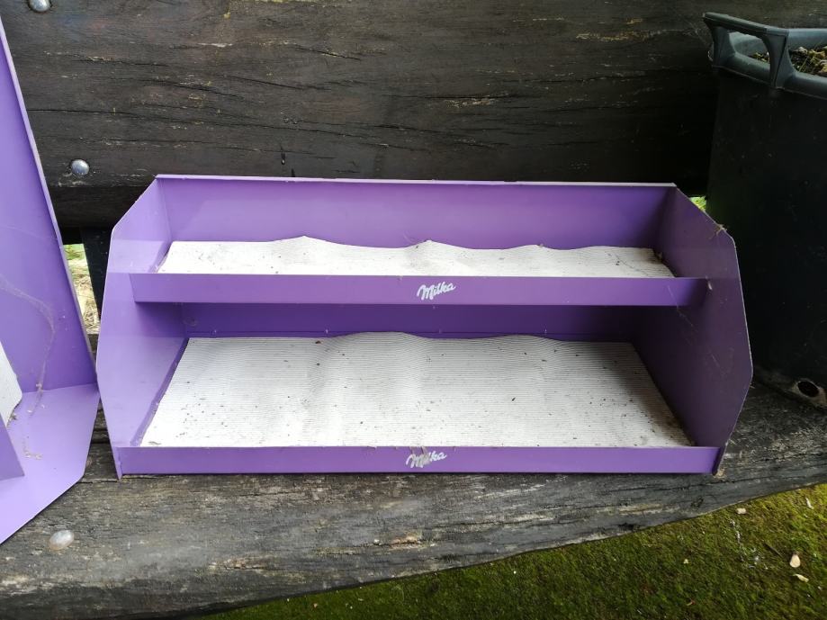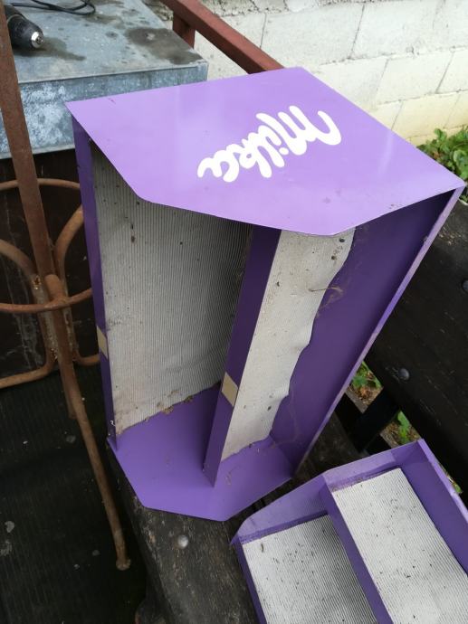 Limena metalna polica tj stalaža Milka, 2kom. Nema oštećenja. Dimenzije: duž 55, vis 21, dub 23. Obje zajedno koštaju 40e. Cijena je fiksna. Na sms nemogu odgovoriti, najbolje bi bilo da me nazovete 099 687 5657 ili pošaljete poruku preko Njuškala.