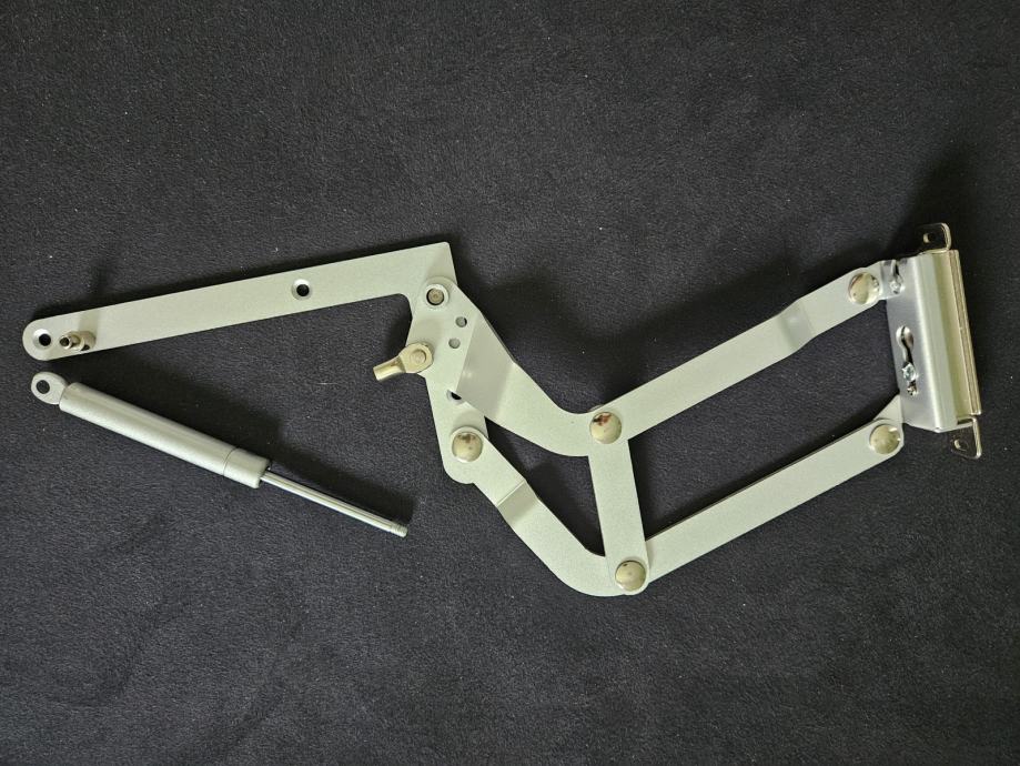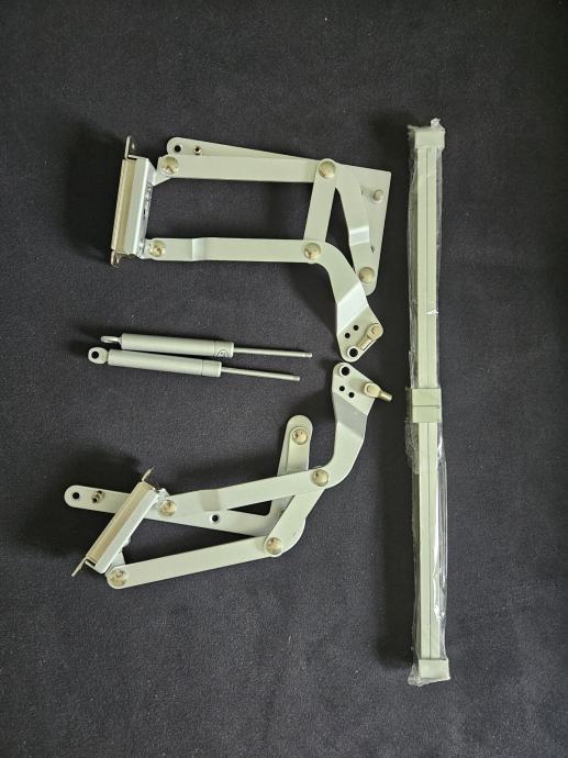 Prodajem potpuno novi i nekorišteni podizni mehanizam za vrata kuhinjskih ormarića ili slične stolarske primjene. Mehanizam je jednostavan za ugradnju, praktičan i estetski privlačan, s dobrim nosivim kapacitetom i dugim vijekom trajanja.