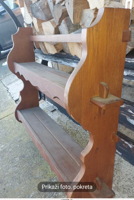 Prodajem hrastovu policu na dva nivoa i ispod s vješalicom.Zgodno za odlaganje u kuhinji začina i sličnih stvari.Dimenzije cca 80x70 cm širina polica oko 15 cm.