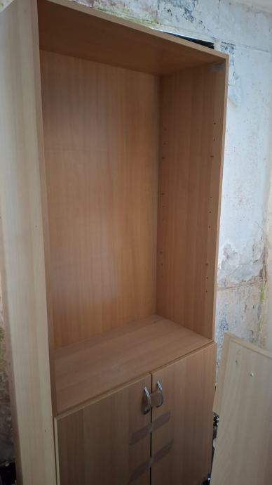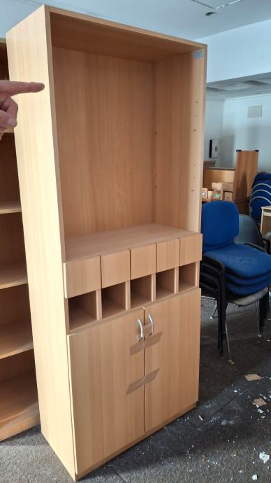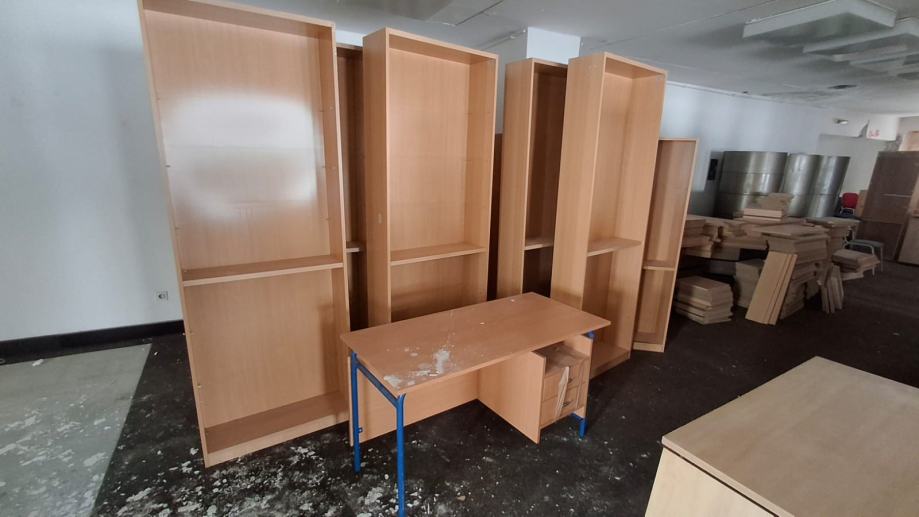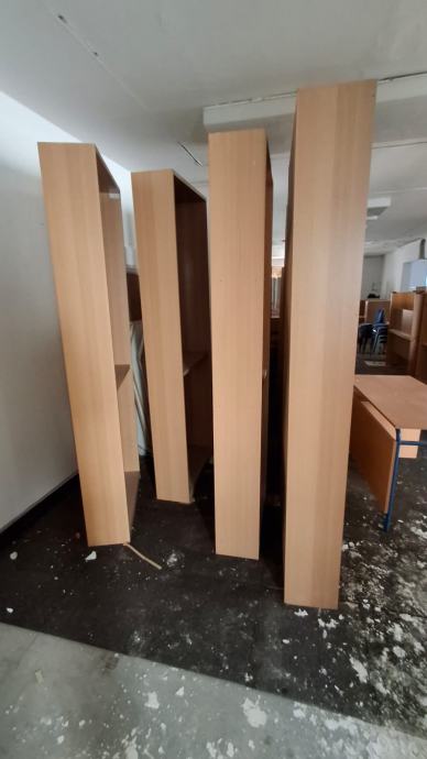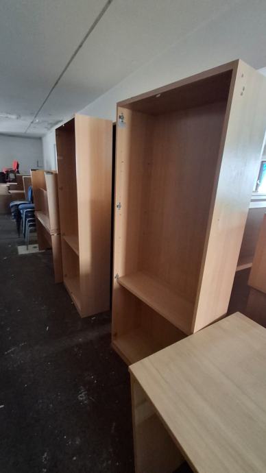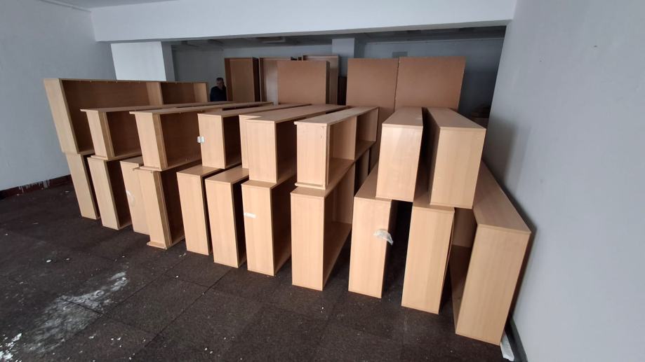 Police za knjige, starost oko 20 godina, očuvane u odličnom stanju. Zamijenjene su jer je nabavljen novi namještaj za školsku knjižnicu. 30 polica.