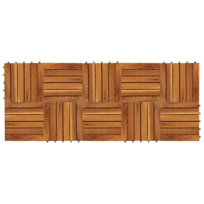Ovaj set od 20 podnih pločica od tvrdog drva bit će savršen za ukrašavanje površina ili staza u vašem vrtu, na terasi ili balkonu, ili bilo kojoj prostoriji. Uzorak je ukrasan, ali također sprječava klizanje.