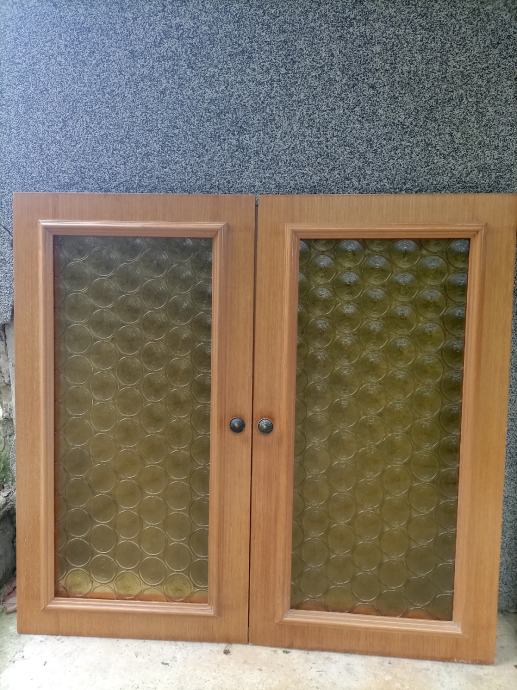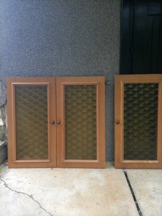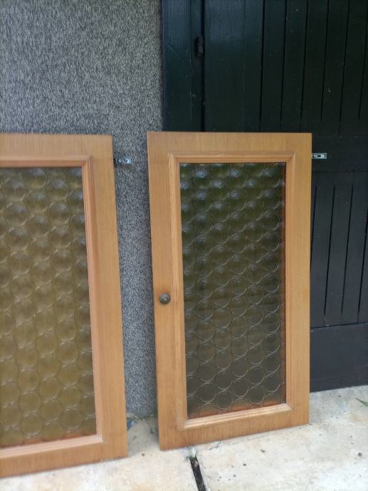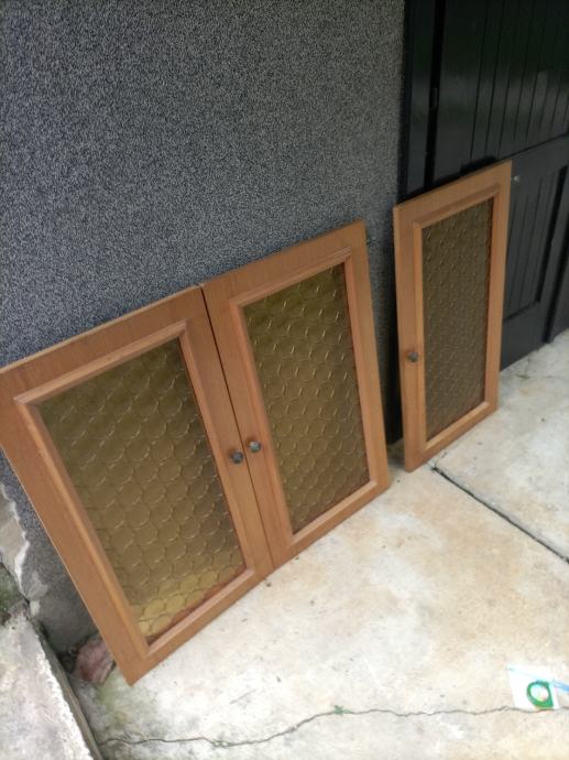 Troja vrata od punog drva sa staklom dimenzija 45*85 cm, sa staklenim dijelom dimenzija 32*72 cm, pogodna za ugradnju u sobni ili kuhinjski ormar. Jedna vrata 10 eura. Ukupno 30 eura.