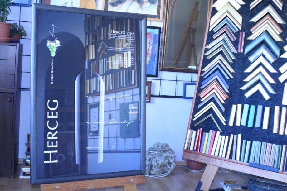 Okvir možete odabrati po izloženim uzorcima. Na stanju konstantno imamo oko 100 vrsta okvira, od običnih, stilskih pa sve do baroknih profila. Ako Vam to nije dovoljno, po katalogu možemo ponuditi dodatnih 3000 vrsta profila za izradu okvira. :-)