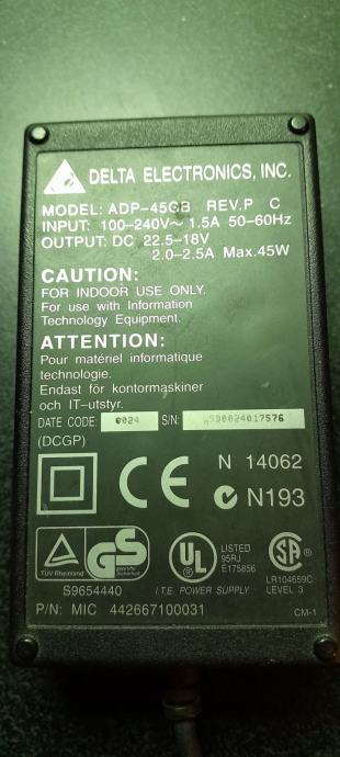15 DELTA ELECTRONICS Model:ADP-45GB Output:DC 22,5-18V/2,0-2,5A
