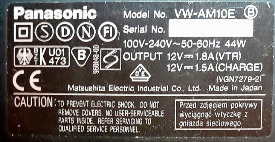 17 Panasonic Model:VW-AM10E Output:12VDC 1,8A(VTR) 12V-1,5A Charge