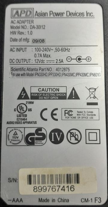 18 APD Model:DA-30I12 Output:DC12V-2,5A