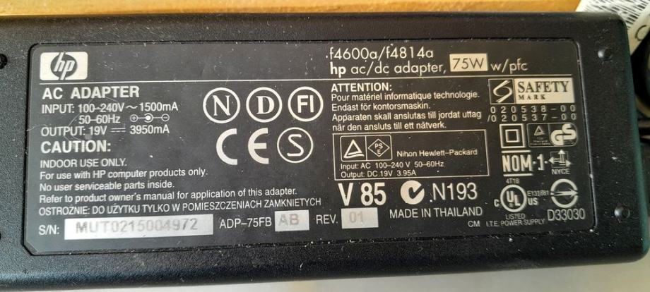 2 HP Output:19V,3950mA,75W Đek:V5.5mm. N2.5mm.
