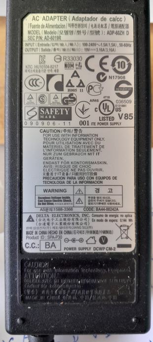 4 Model:ADP-60 ZHD Output:19V,3.16A.V5.5mm,N3mm