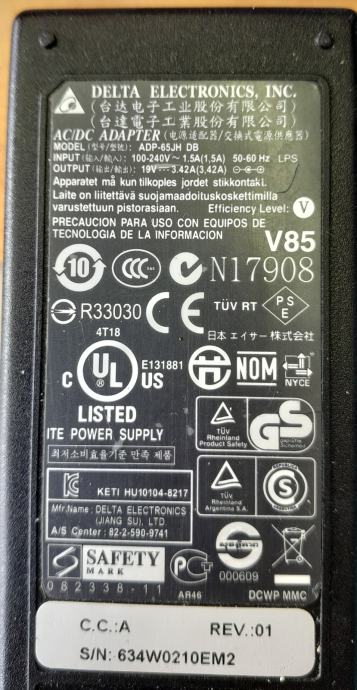 5 Model:ADP-65 JH DB Output:19V,3.42A .Bez đeka