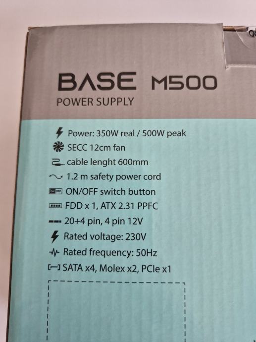 ATX Napajanje, MS BASE M500 500W - Račun/R1/ Jamstvo