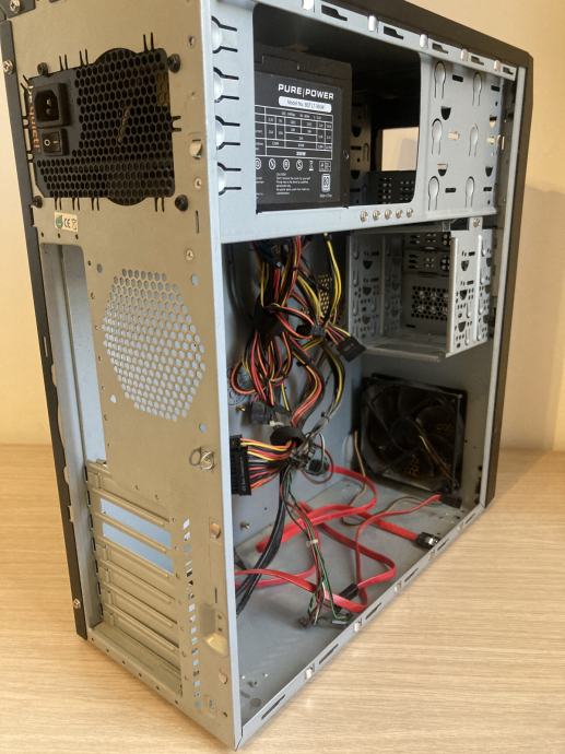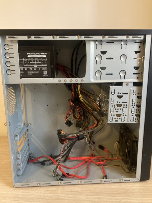 92mm straga, 2x USB, eSATA, vanjska ležišta: 2x 5.25" + 2x 3.5", Interna ležišta x7: PCI pune visine, 2x 3.5", 44x18x46cm D/Š/V, s ispravnim odličnim velikim ventilatorom iznutra i kabelom ventilatora, ventilator ne zapinje.