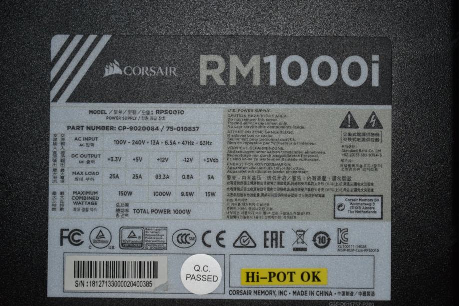 ♦ MODEL: Corsair RM1000i