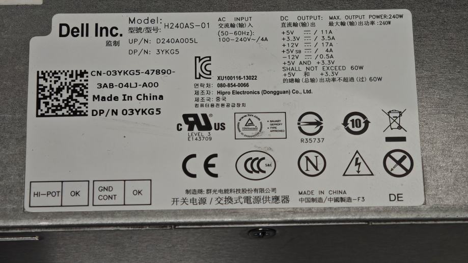 Prisajem napajanje H240AS-01 za DELL desktop računalo