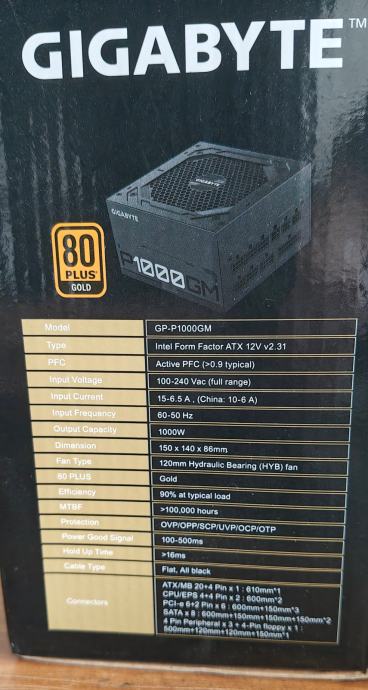 Prodajem Gigabyte napajanje 1000W 80+ Gold. Detalji na fotografijama.