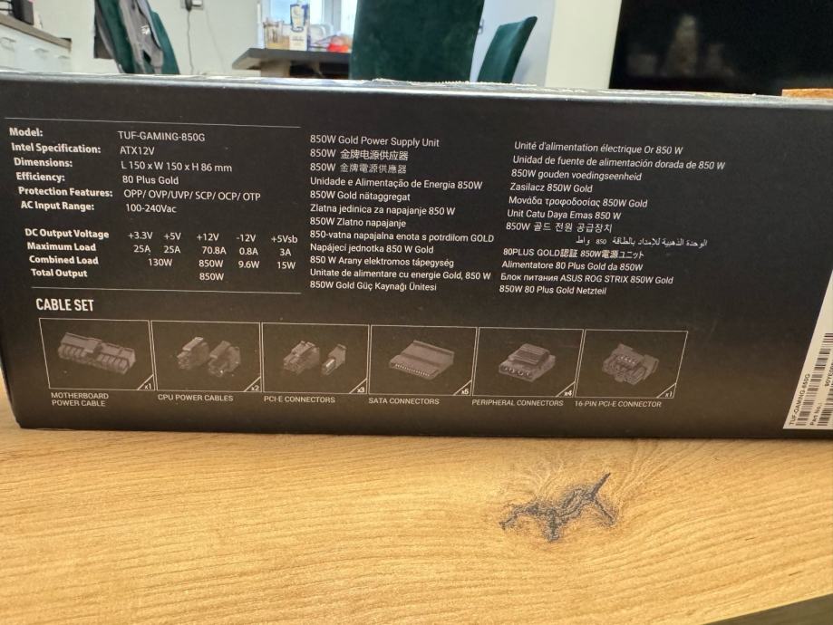 Asus TUF gaming napajanje, 850W gold+ modularno ATX.