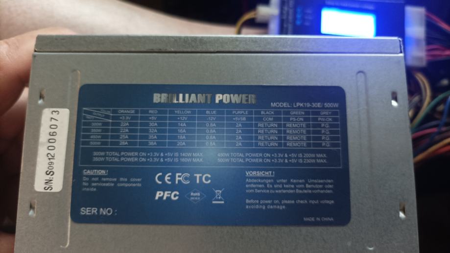 Prodajem navedeno napajanje ispravno. Izlazi 24 pina za napajanje matične ploče, 4 pina za napajanje procesora i 6 pina za napajanje grafičke kartice.