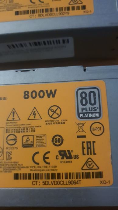 Prodajem rabljeno napajanje za HP DL380 Gen9 server snage 800W. Napajanje je 80 PLUS Platinum certificirano za maksimalnu energetsku učinkovitost. Idealno za serverske sustave ili zamjenu postojećeg napajanja. Cijena je po komadu imam više komada.