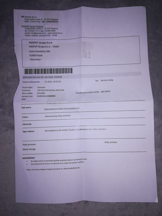 Prodajem napajanje iz naslova koje je radilo jednu večer te je vraćeno u kutiju sa svim kablovima, kao što je vidljivo na slikama. Razlog zašto sam ga izvadio iz kutije je taj što sam htio biti siguran da nije ventilator na napajanju neispravan ( bučan ) kao što mi je bilo na starom napajanju te sam iz tog razloga poslao na reklamaciju te sam dobio novo. Ventilator na ovom napajanju je u ispravnom stanju. Napajanje dolazi sa garancijom od 120 mjeseci, koja je ostvariva u HGSPOT-u.
