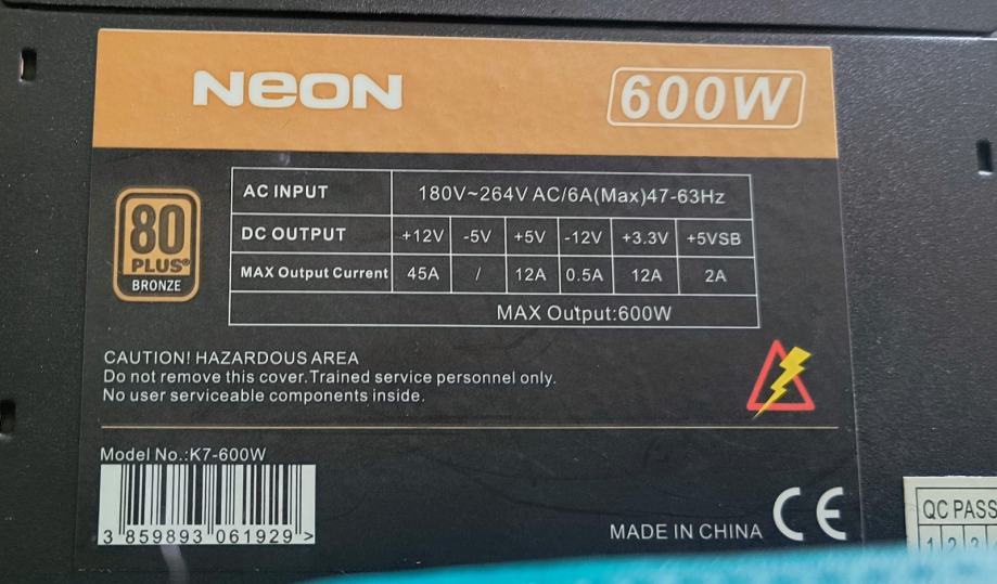 PRODAJEM NAPAJANJE ZA PC NEON 600W +80%BRONZE UČINKOVITOSTI I AMD AM4