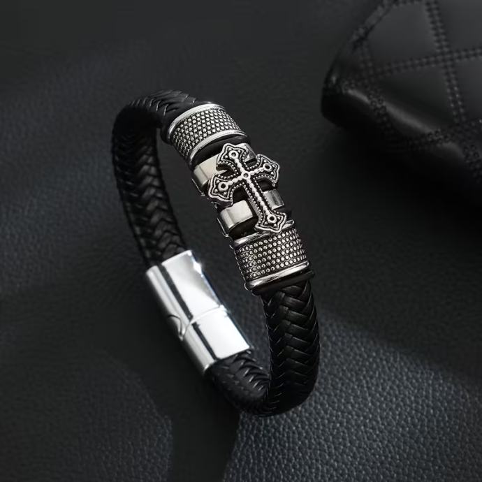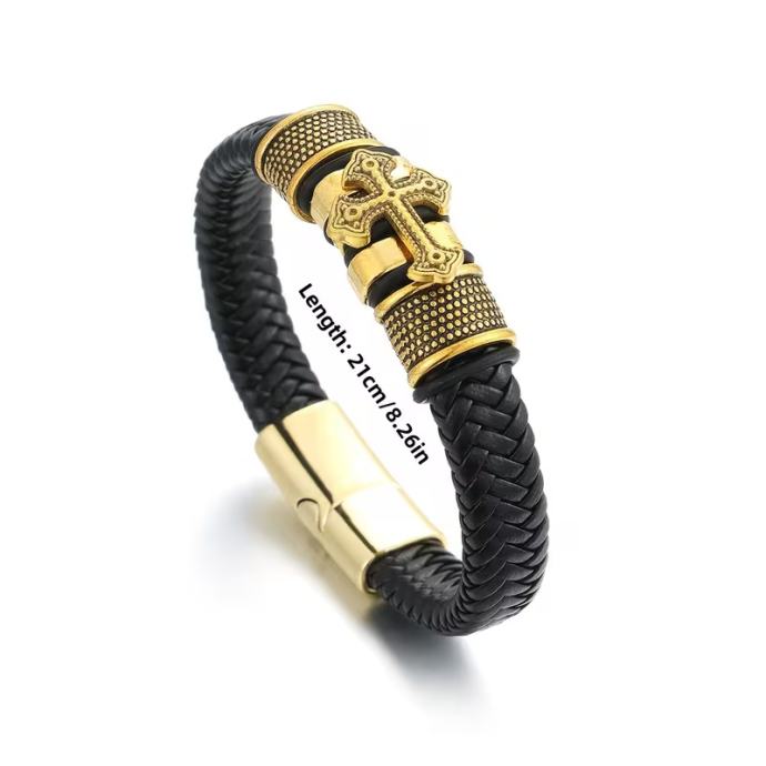 1 kom. moderna pletena narukvica s križem, zlatne i srebrne opcije, pleteno uže s 3D križem + teksturirani naglasak, unisex vintage ulični stil, svestran modni dodatak