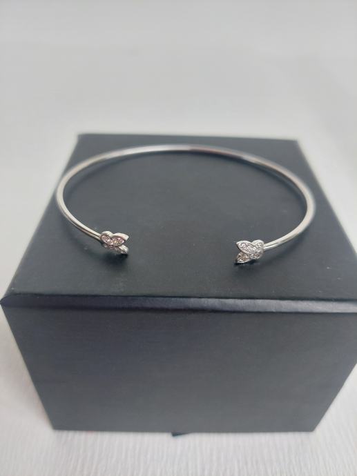 Nova, iznimno elegantna, nenošena Argentum narukvica, 925 srebro, u originalnoj kutiji. Širina 6,1 cm. Otvorenog tipa s 2 leptirića od cirkona. Primopredaja Zagreb-Dubrava ili Tisak. Poštarina nije uključena u cijenu