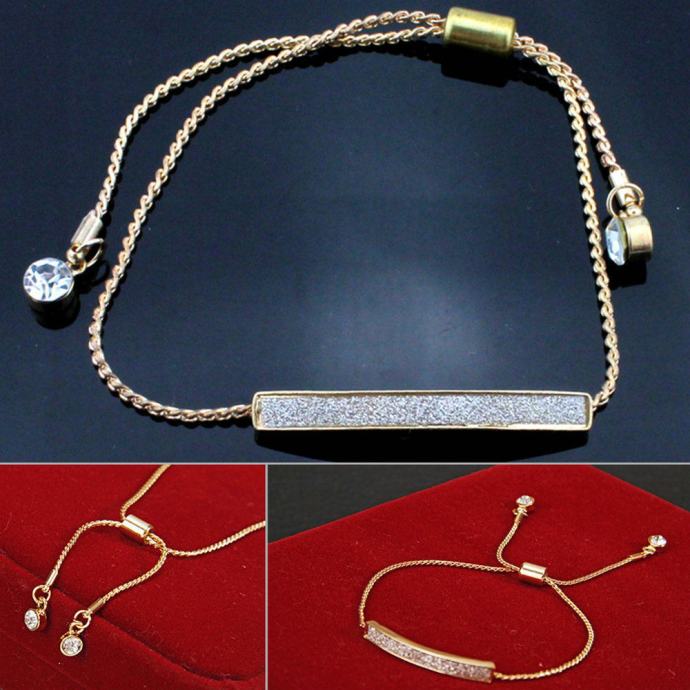 Nove narukvice, boja srebra i zlata, decentne, elegantne, u pločici nisu cirkoni nego smjesa štrasa/šljokica presvučena filmom