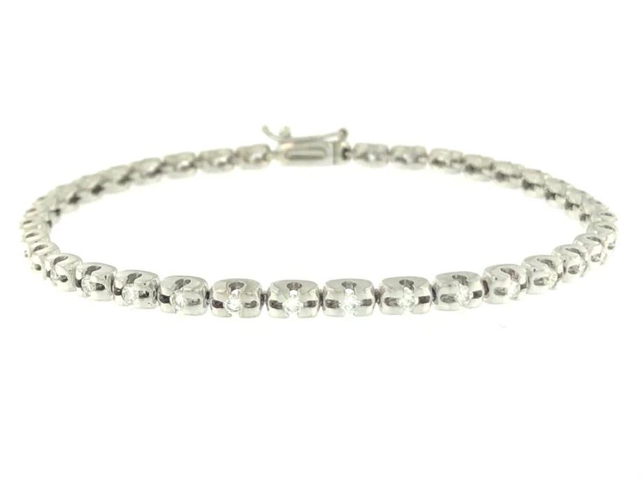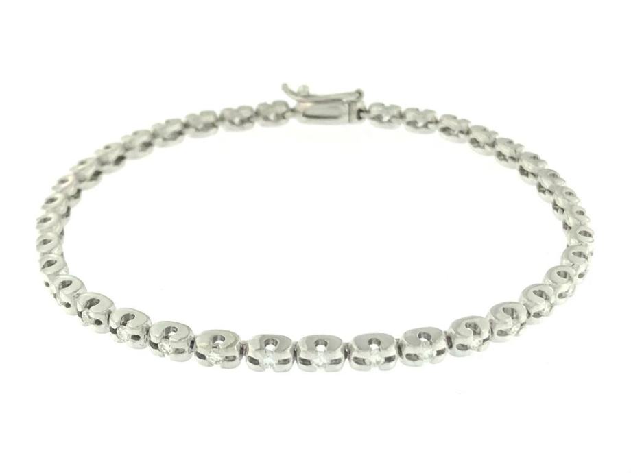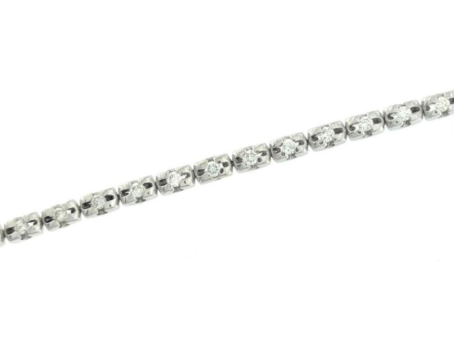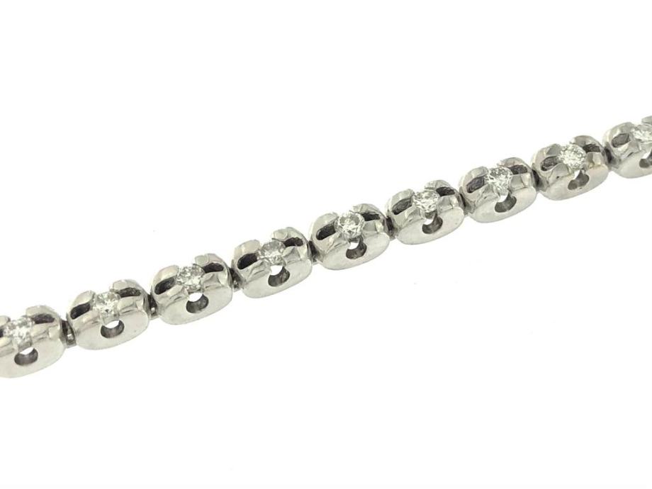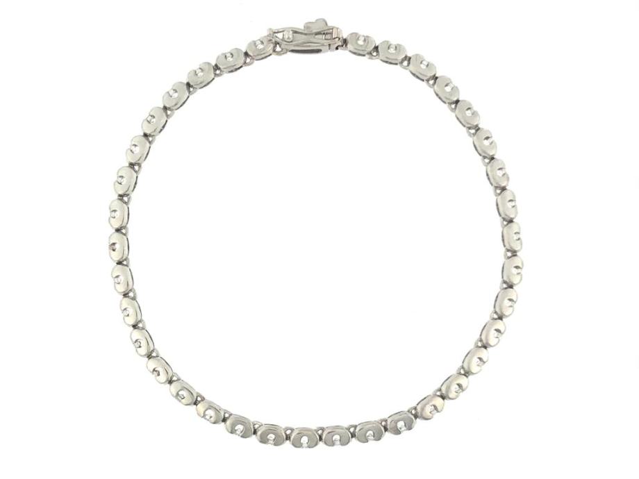 Zlatna narukvica, ženska, segmentirana, 36 dijamanata × 0.02ct u krug, bijelo zlato 18K, žig 750, kopča - "sigurnosna osmica".