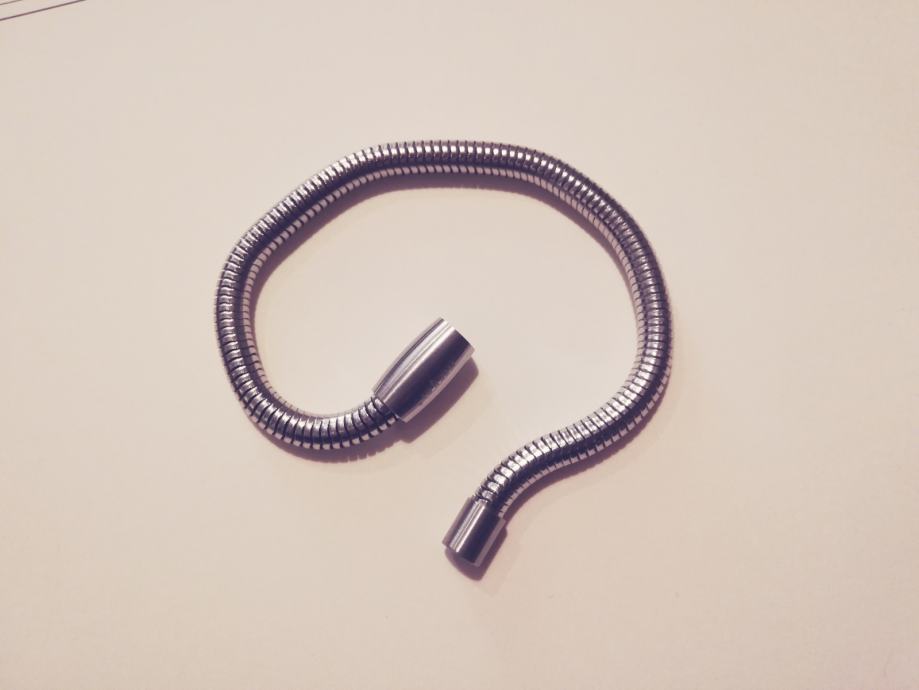 Jedna je kruta i elastična (namota se oko ruke, (ručni zglob, ili nadlaktica?)) a druga je podatna i gibljiva, kopča se automatski, na magnet (jak je magnet, ne otkapča se lako)
