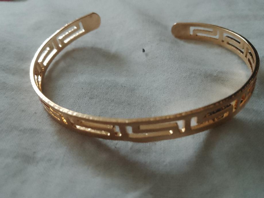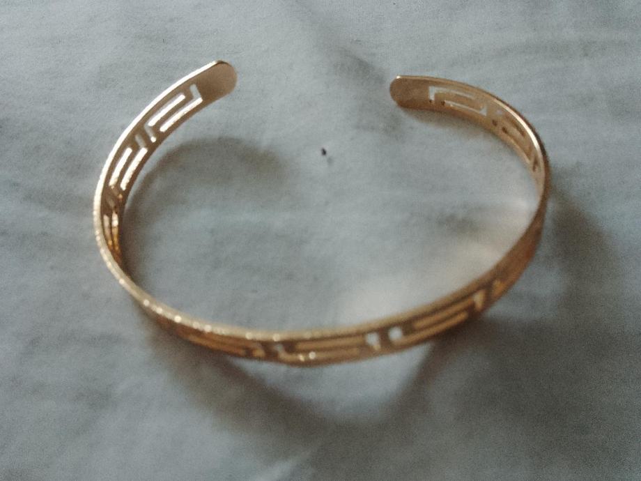 Elegantna ljetna lagana "zlatna" narukvica , bižuterija. Podesiva i savitljia, ali po meni ipak za malo užu ruku , nije baš za xl/xxl. Bez oštećenja. 3 eura + pt