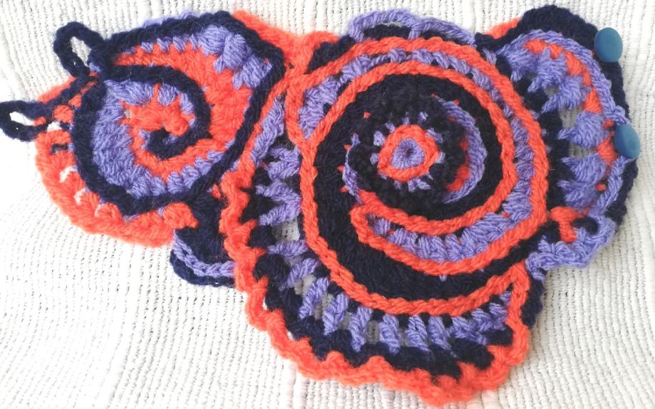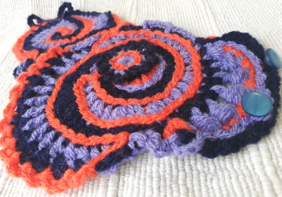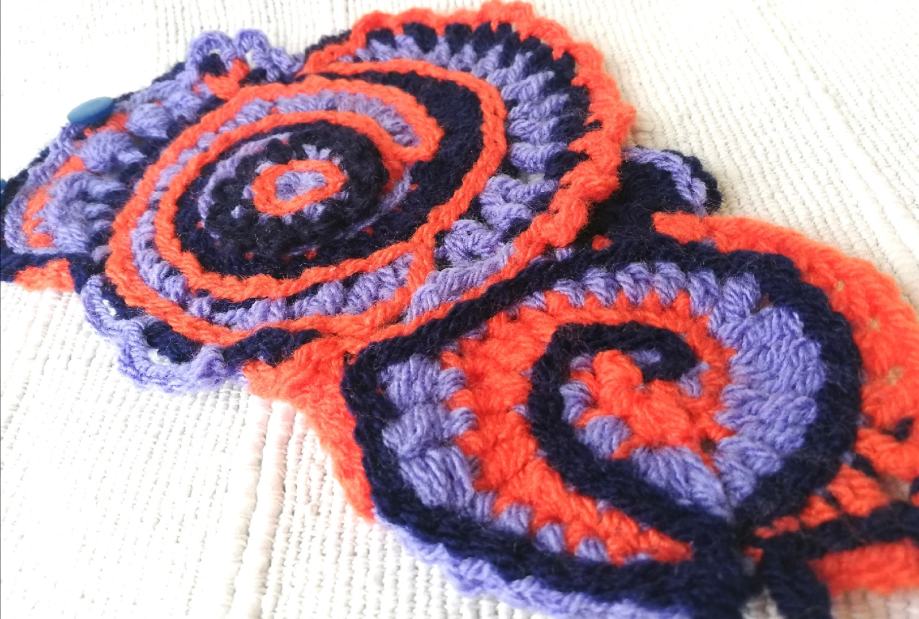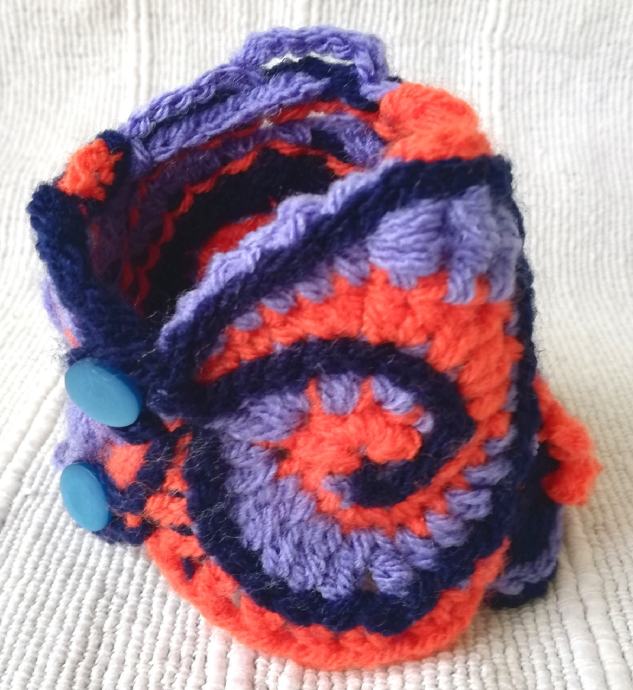 Heklana narukvica rađena u freeform stilu. Ručni rad, unikat.