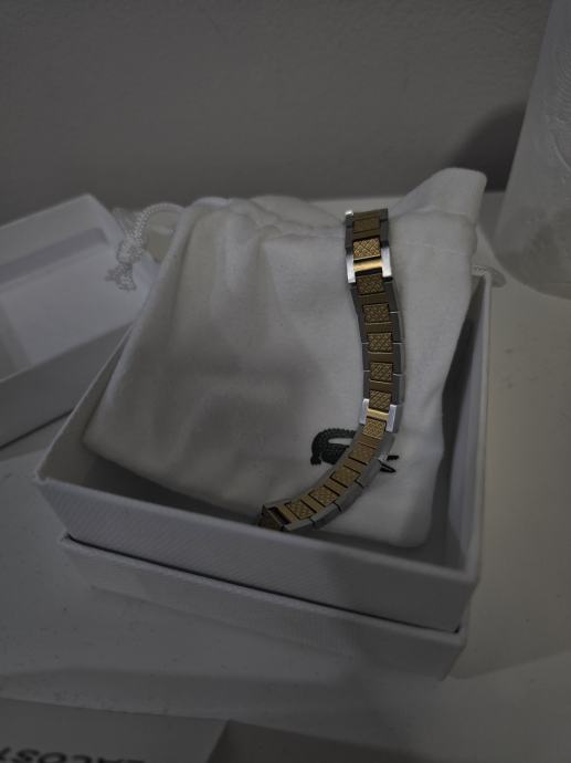 Prodajem originalnu Lacoste narukvicu u zlatnoj boji s prepoznatljivim dizajnom. Narukvica je nova, s etiketom, dolazi u originalnoj kutiji s Lacoste logotipom. Elegantna i moderna, izrađena od kvalitetnog materijala.