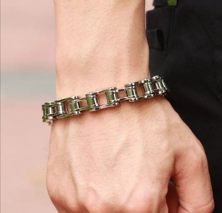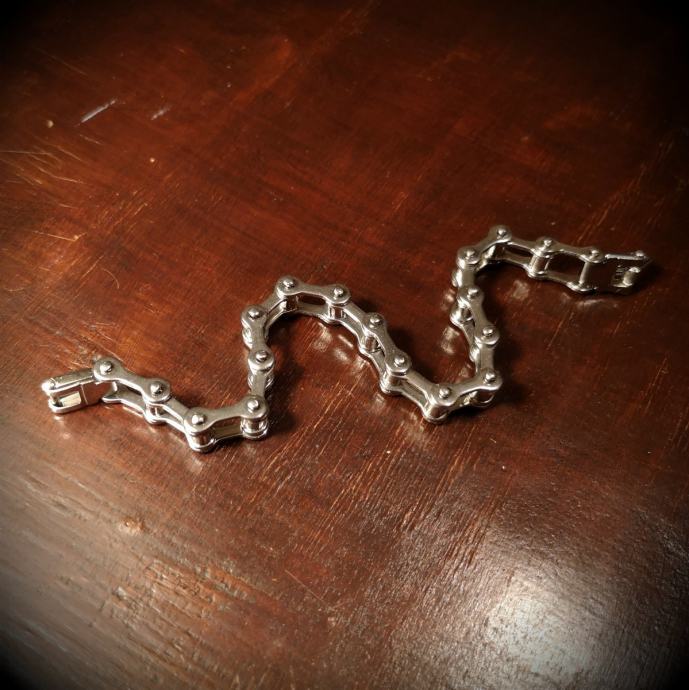 Odlična i precool narukvica sastavljena od dijelova koji imitiraju lanac bicikla.