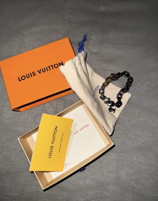 Prodajem Louis Vuitton narukvicu, potpuno novu s etiketom. Dolazi s originalnom vrećicom i svom pripadajućom dokumentacijom. Narukvica je crne boje s lančanim dizajnom i karakterističnim detaljima brenda.