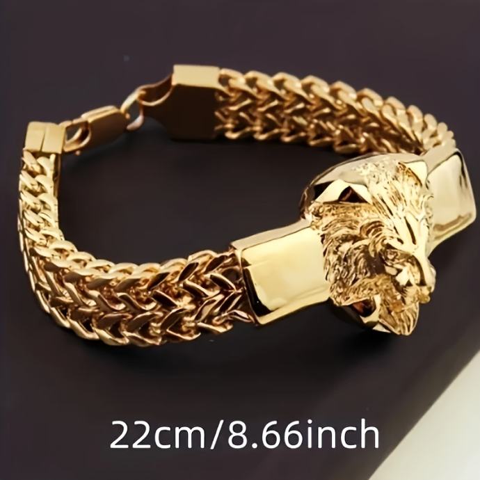 Moderna narukvica od nehrđajućeg čelika s lavljom glavom, savršena za muškarce i idealna kao poklon za zabave ili bajkerski nakit