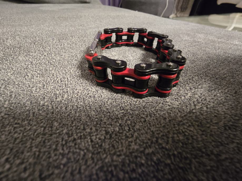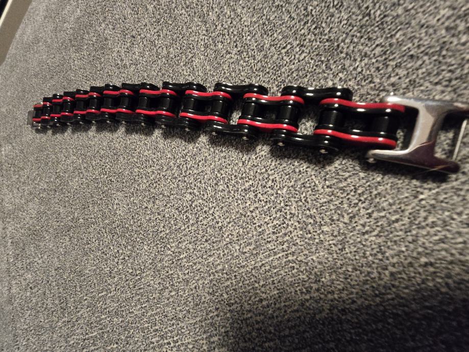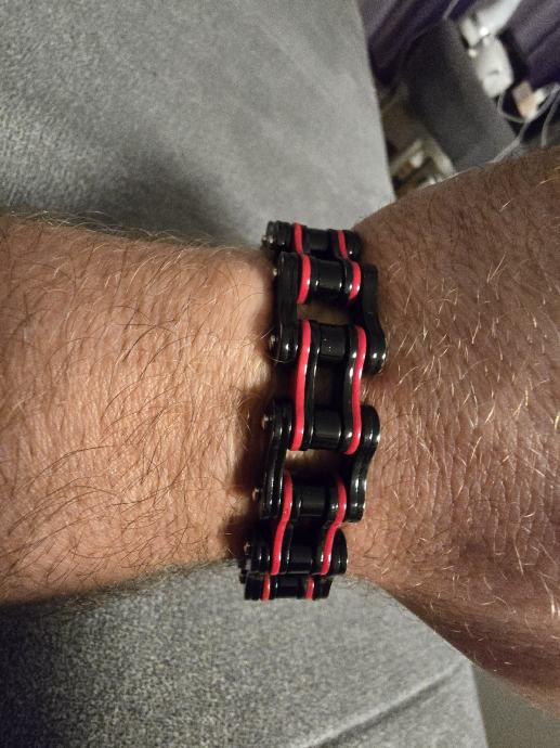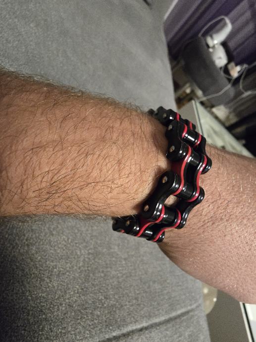 Moto narukvica,uzorak lanac od motora. Nehrđajući čelik plastificiran. Novo. Veličina XL.