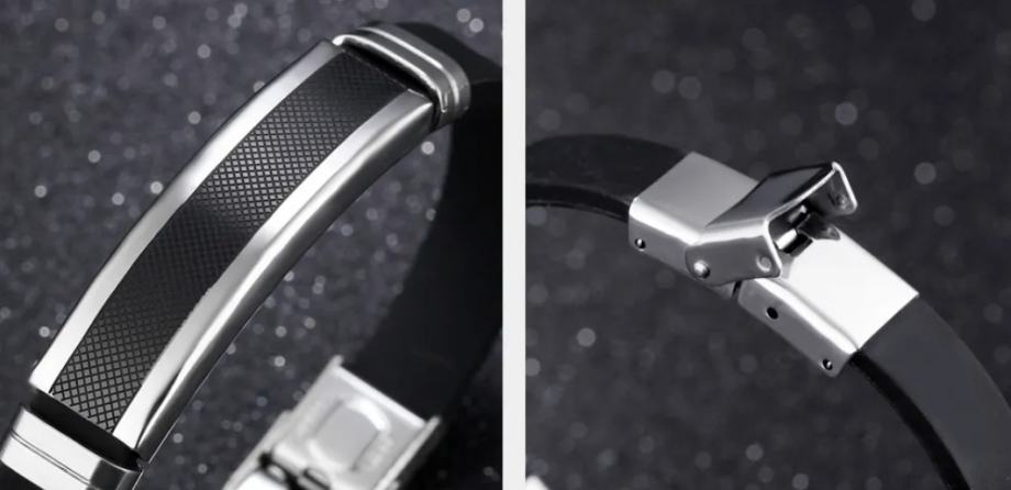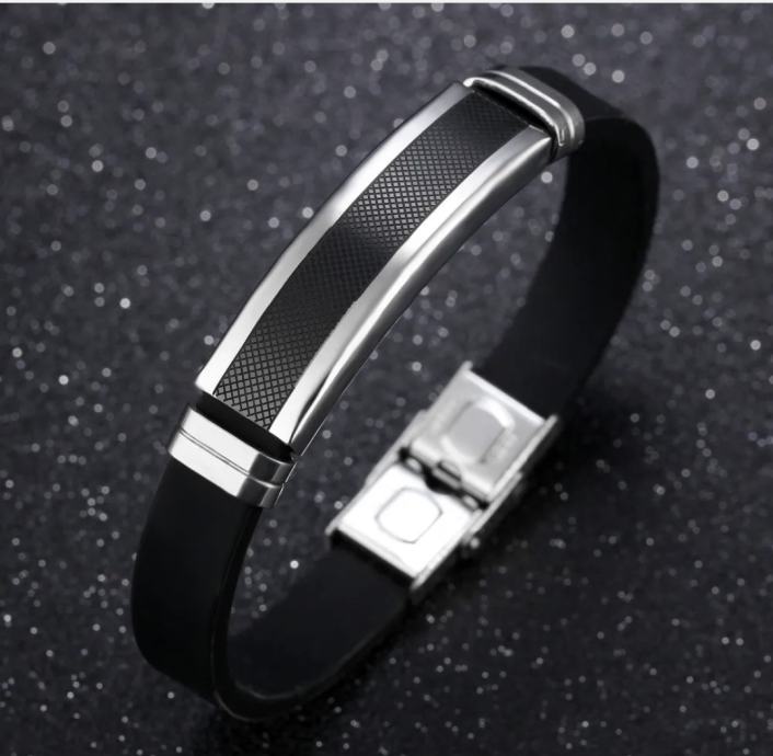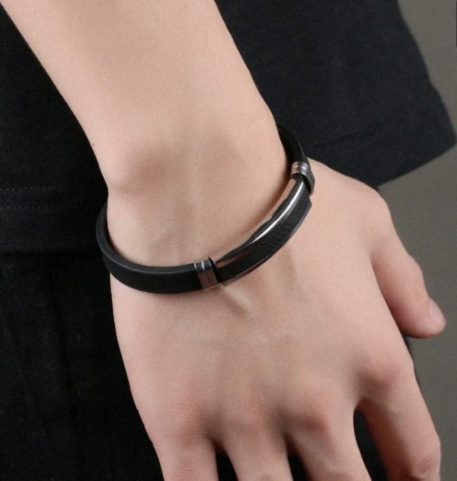 Sa slike, muška narukvica od kirurškog čelika i silikona.
