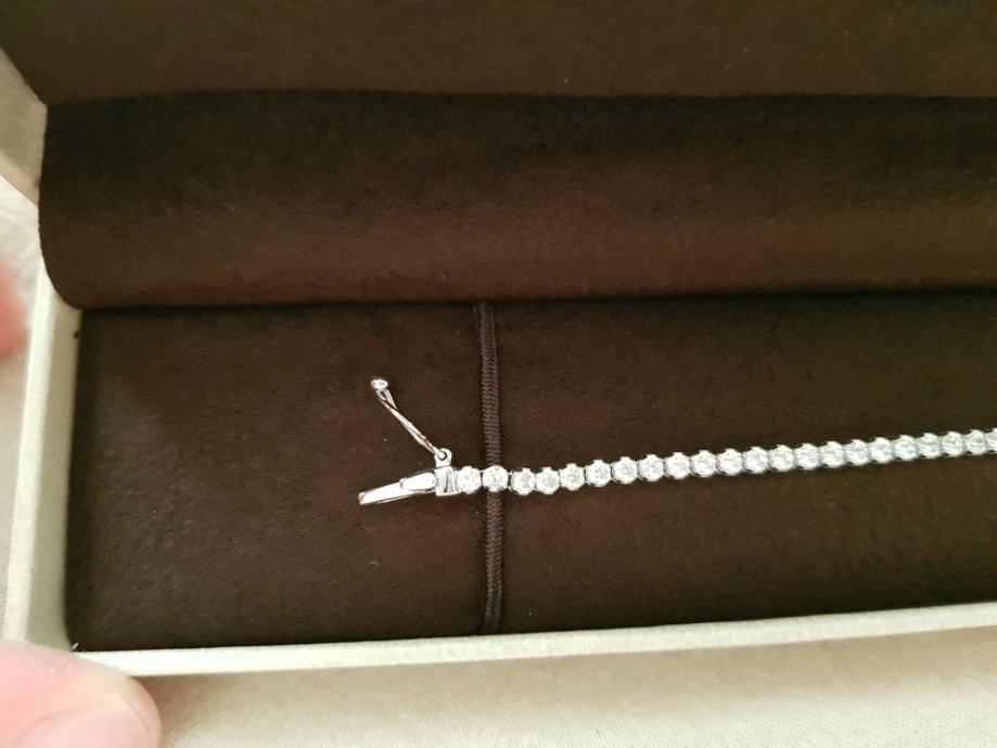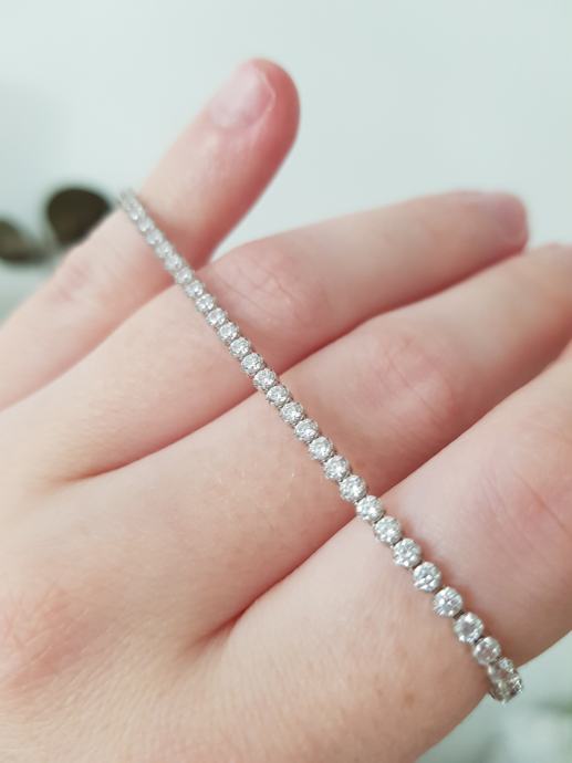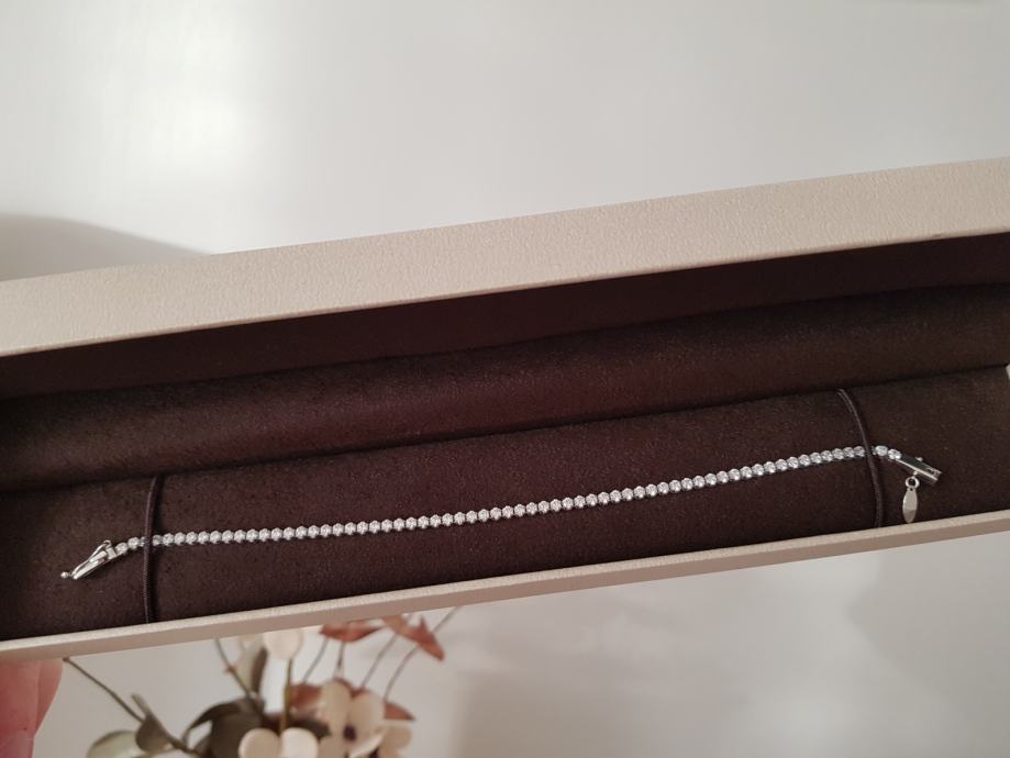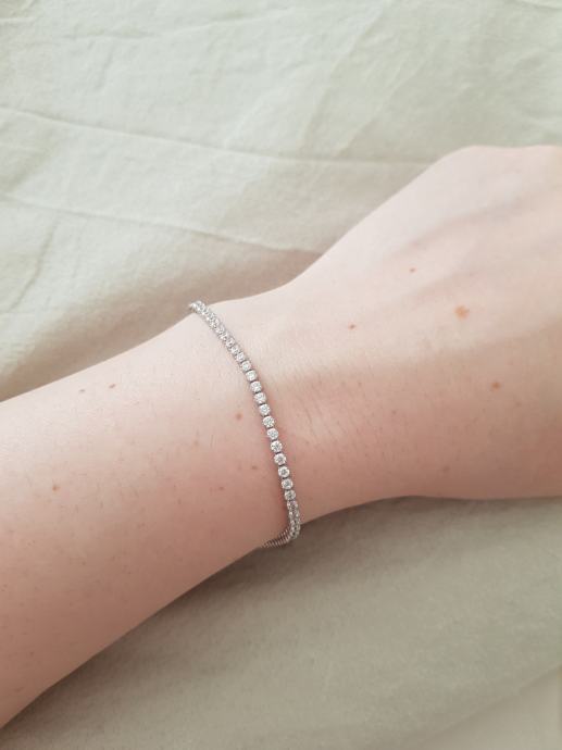Prodajem potpuno novu narukvicu od pravog zlata (14 karatno bijelo zlato, sa žigom) sa cirkonima visoke kvalitete.