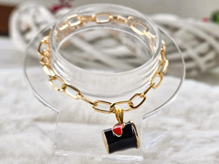 Glavna zvijezda je preslatki privjesak crne šalice s crvenim srcem.