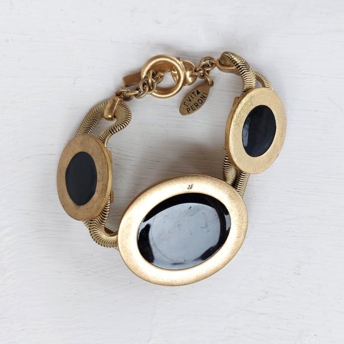 Elegantna narukvica prestižnog danskog brenda Evita Peroni – pozlaćena, s profinjenim crnim kamenjem koje daje dašak glamura svakom outfitu.