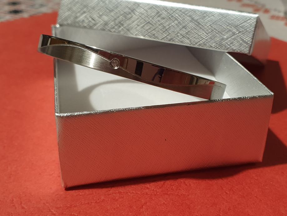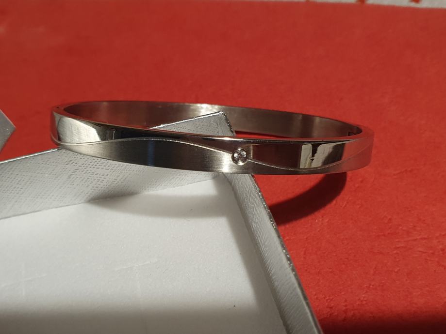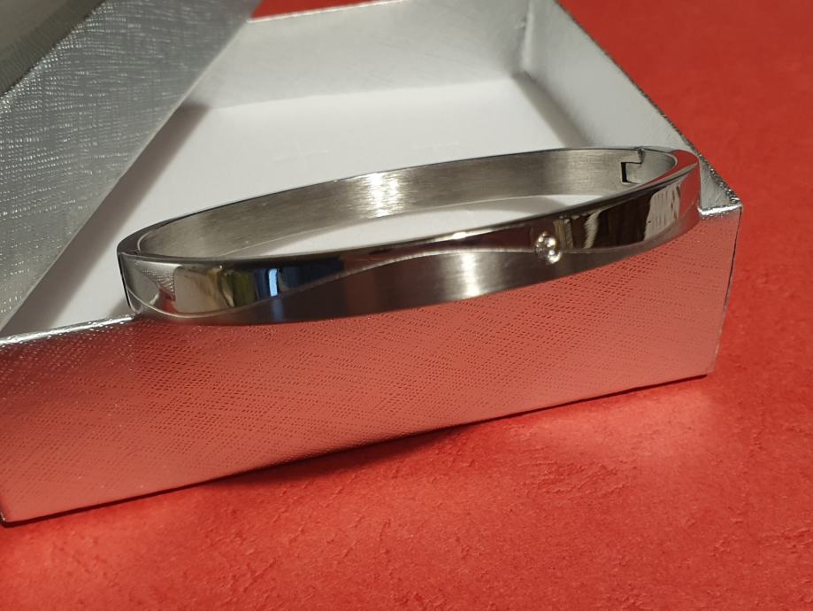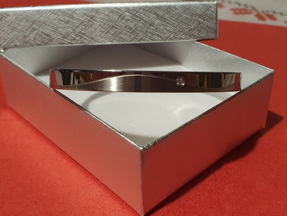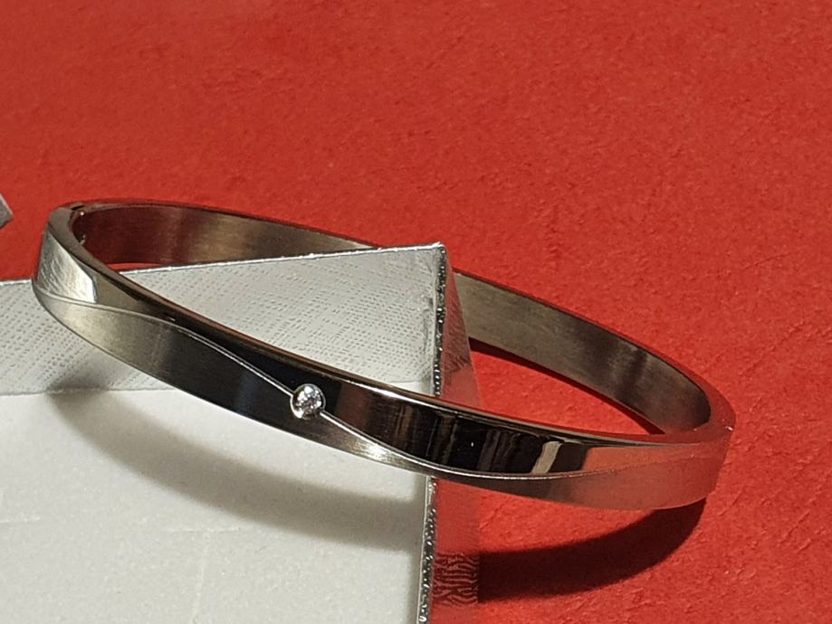 Narukvica kirurški čelik čvrsta sa cirkonom, narukvica je eliptičnog oblika, unutarnji promjer narukvice je 58 mm (duži)