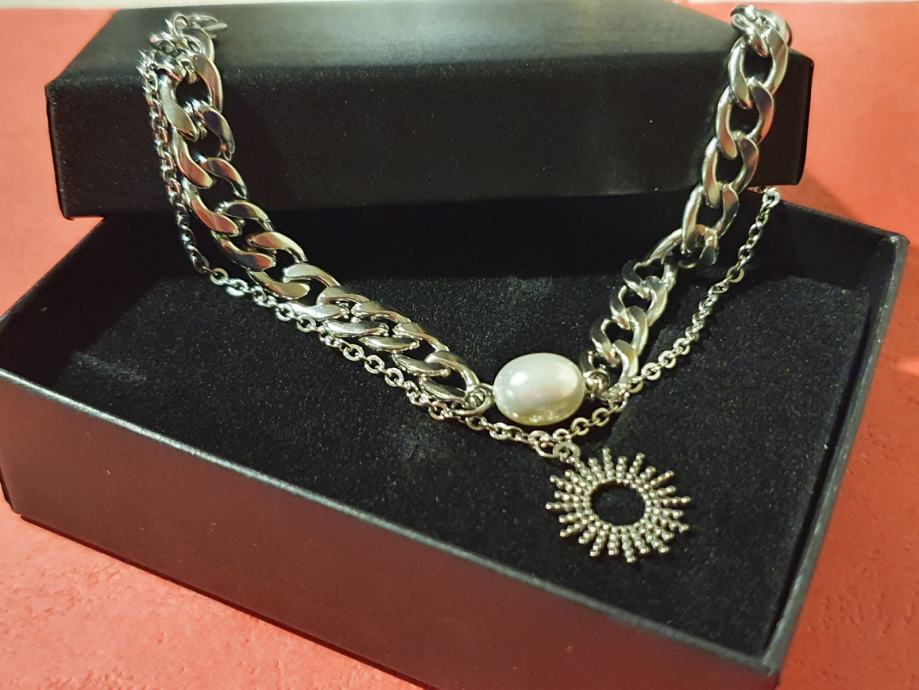 Narukvica kirurški čelik dupla s biserom