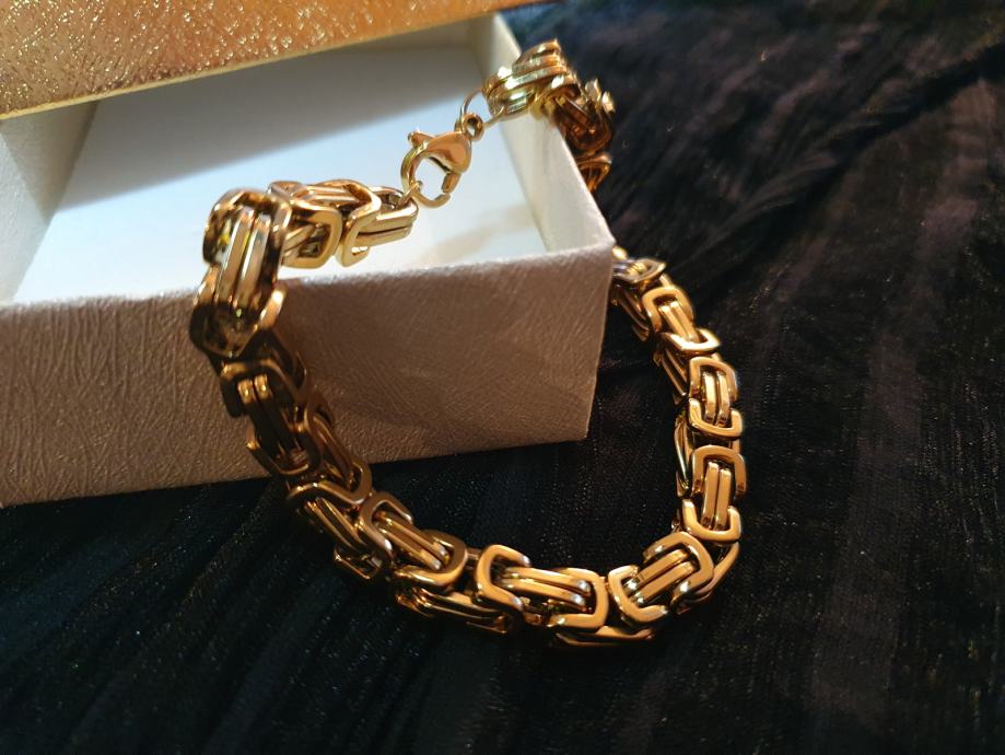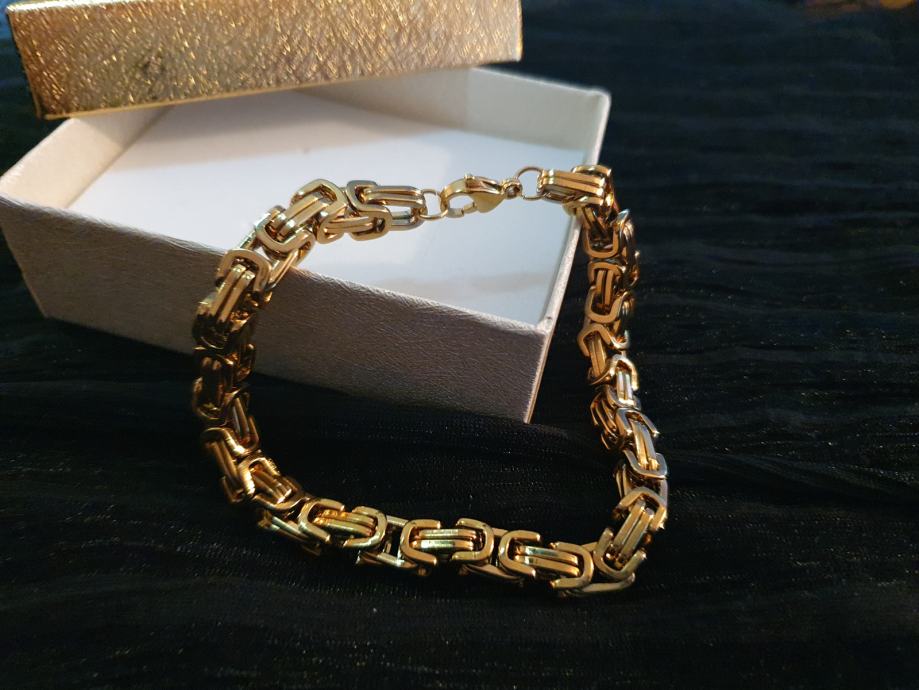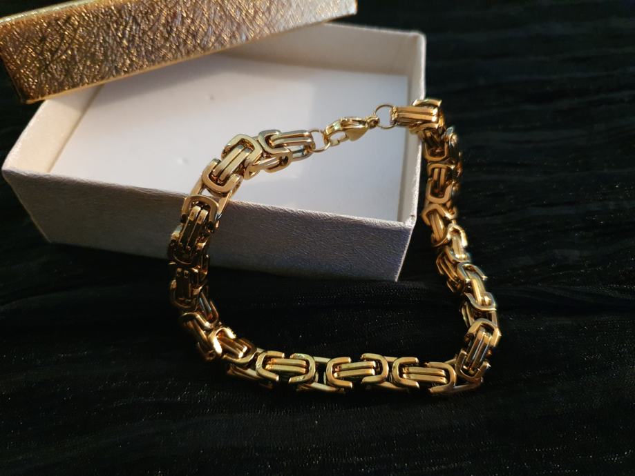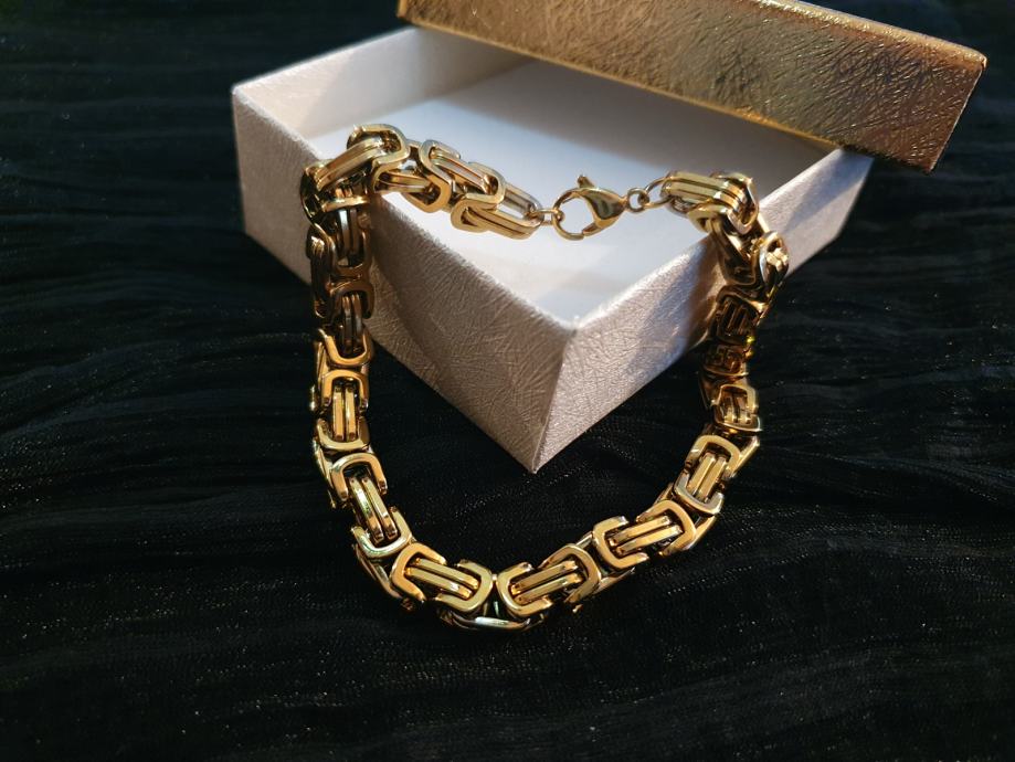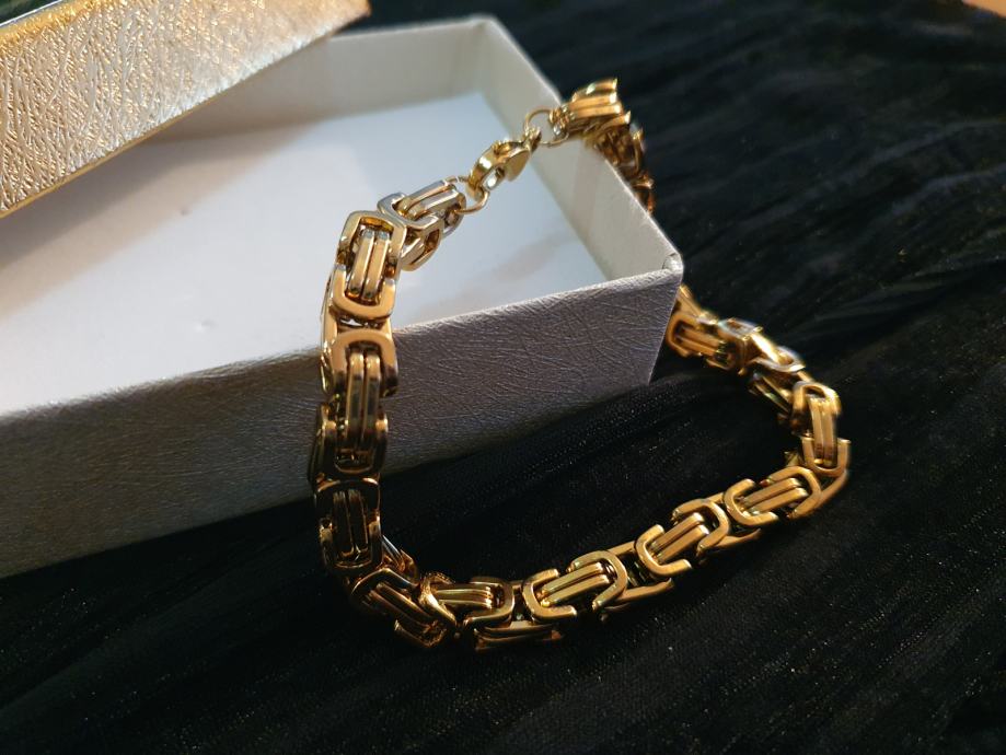 Narukvica kirurški čelik kraljevski vez 7 mm cijela pozlaćena